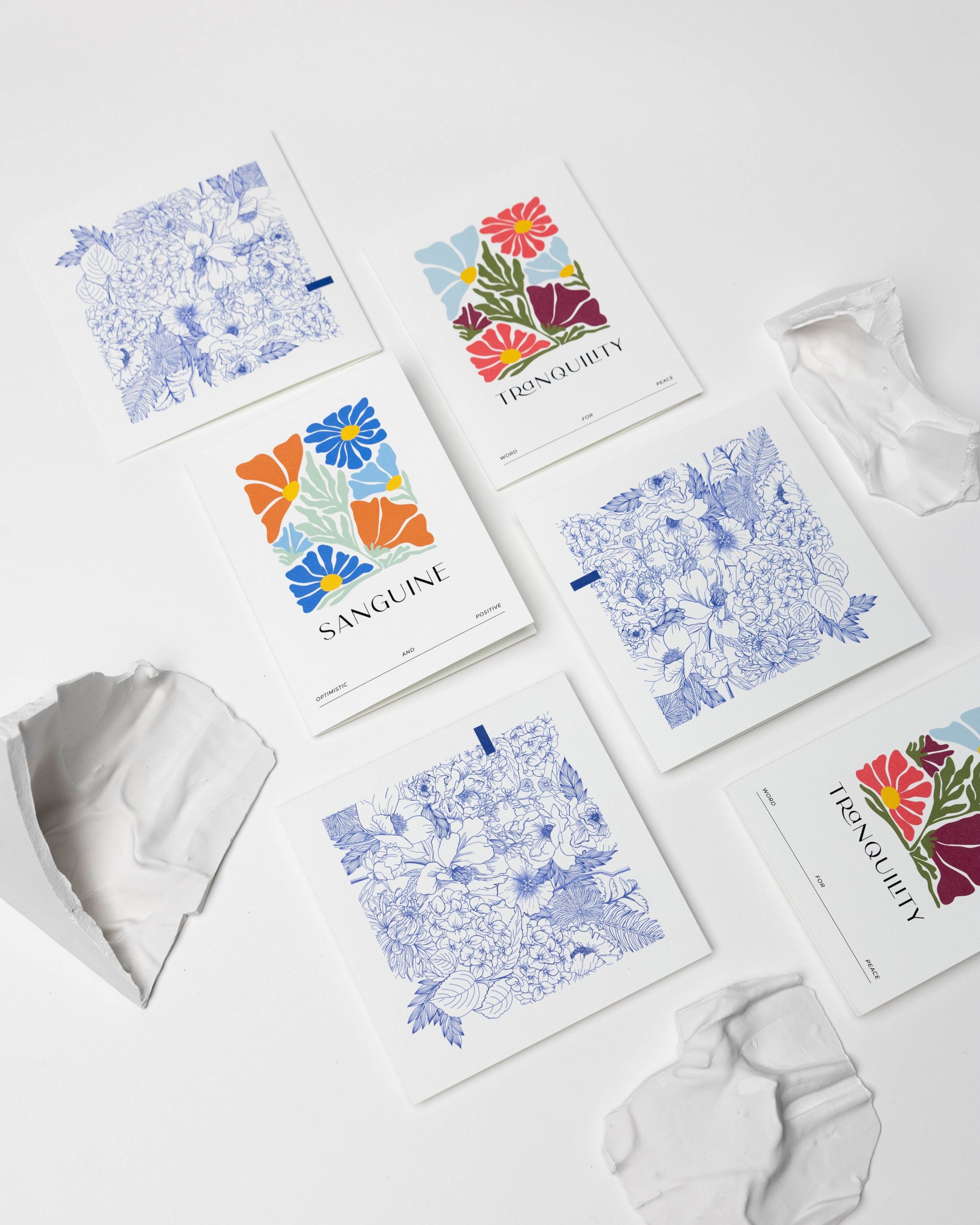 spalvingi gėlėmis ir papildyti raidėmis atvirukai kvėpti Henri Matisse kūrinių, kurie apžavi spalvų bei formų susitikimais išreiškiančiais optimizmą. Ryškūs ir aptakūs gėlių motyvai – tarsi linkėjimas drąsiai svajoti